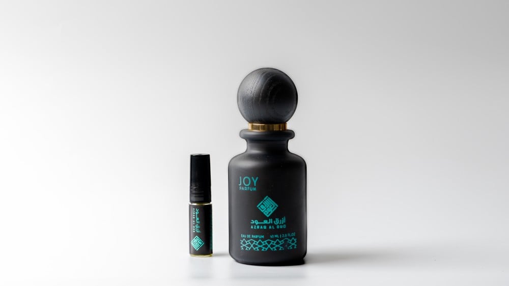 ياتي العطر في بوكس أزرق العود ويأتي معه كيس من أجل الاهداء